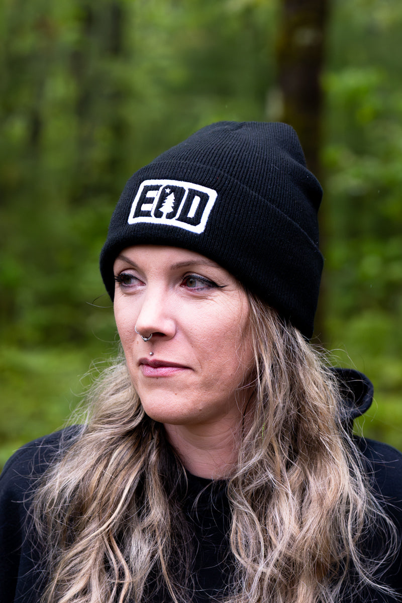 Keep your head and ears warm during the long days of winter with this classic cuffed EOD badge beanie.