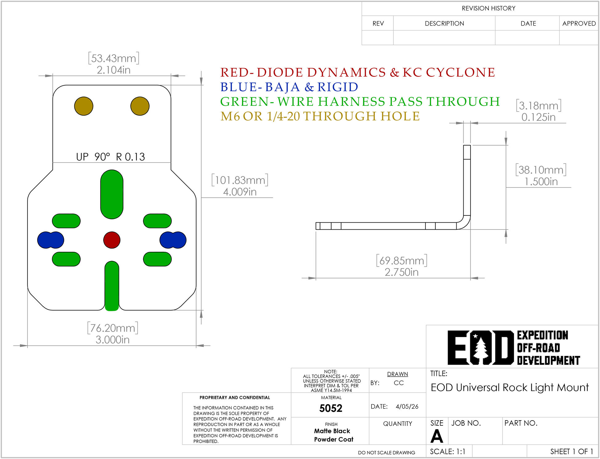 What makes it universal is the ability to bolt Baja Designs, Diode Dynamics, Rigid and KC branded rock lights. Plus the ability to mount to any vehicle manufacture utilizing 1" centerline hole spacing in conjunction with our optional 40lb magnets.